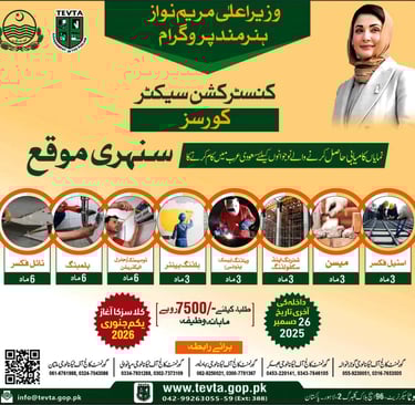 TEVTA Free Courses December 2025 CM Punjab Hunarmand Program Construction Sector