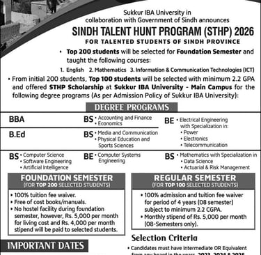 Sukkur IBA University Sindh Talent Hunt Program December 2025 Online Apply STHP Latest